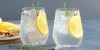 Klassisk drink med gin og danskvand samt tynde strimler af citronskal.