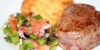 Snit løgringe af løgene og steg dem ved høj varme. De skal ikke nå at få farve. Fjern dem fra varmen, men sørg for at de forbliver lune. Bøfferne sauteres ved omkring 200 grader, inden der skrues ned for varmen og de steges fortsat i omkring 3 min. på begge sider.