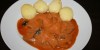 Tag bøfferne af panden, og lade dem trække lidt inden servering. Kog panden af med den anden halvdel af bouillonen. Hæld det derefter i kasserollen. Kog saucen lidt ind og jævn den evt. med lidt maizena.