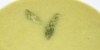Server med lune ærter og bacon i små stykker, strøet ud over den cremede suppe.