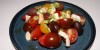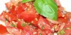 Skær tomaterne i fine skiver. Hak løg fint og pres hvidløg. Snit forårsløgene i tynde ringe. Bland grøntsagerne i skålen.