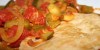 Kom peberfrugt, vin, bouillon, hakkede tomater og krydderier i gryden. Lad retten snurre med låg i omkring 25 minutter. Vend kalkunbrystet nogle gange imens.