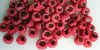 Pisk æggehviderne næsten stive i en skål. Tilsæt sukkeret og pisk videre til æggehviderne er helt stive (som fyldet i en flødebolle).