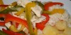 Kyllingekødet skæres i tern og lægges ovenpå suppen, når den serveres på tallerkenen. Der kan evt. lægges en skefuld mango chutney i tallerkenen under kødet.
