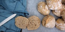 - De bages i forvarmet ovn i ca. 20 minutter ved 220 grader. I bunden af ovnen sættes evt. et lille ildfast fad med vand, så der kommer meget damp inde i ovnen.