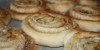 Rul dejen ud og smør fyldet på. Rul den sammen - så stramt som muligt - og skær den i skiver. Læg skiverne på en bageplade med bagepapir eller i muffinsforme (de hjælper til at holde på fyldet).