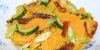 Rist mandlerne på en tør pande. Skær forårsløgene og peberfrugten i mindre stykker, og svits dem i resten af olien.