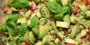 Dressingen laves af revet ingefær, citronsaft, honning og olie. Hæld dressingen over salaten og afslut med at drysse korianderblade over til slut.
