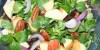 Skyl salaten og kom den i en skål. Hak rødløget og skær tomaterne i kvarte, og kom dem i skålen.