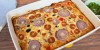 Smør et ildfast fad (ca. 25x20 cm) med olie, og kom broccoli, løg og skinketern i fadet. Drys revet mozzarella ovenpå.