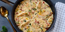 Du kan sagtens lave både en vegetarisk og en vegansk udgave af retten. Undlad kødet, og erstat piskefløde med f.eks. sojafløde eller lignende alternativ for en vegansk version.