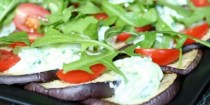 Bagte auberginer med salat og tomat