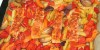 Læg den bagte laks på toppen af pastaen, og server med det samme.