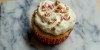 Når kagerne er afkølede, kommes topping i sprøjteposen med den påsatte stjernetylle, og de pyntes.