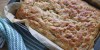 - Beklæd en bradepande (ca. 40x35 cm) med bagepapir, og smør bagepapiret med lidt olivenolie. Hæld dejen ud i bradepanden, og træk forsigtigt i dejen, så den kommer helt ud til kanterne. Det er nemmest, hvis du hele tiden sørger for at fugte fingrene med vand - så hænger dejen ikke ved. Lad dejen hvile i 30 minutter, og varm imens ovnen op til 225 grader (varmluft).
