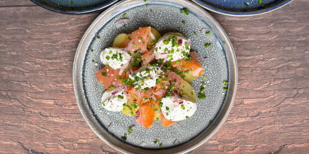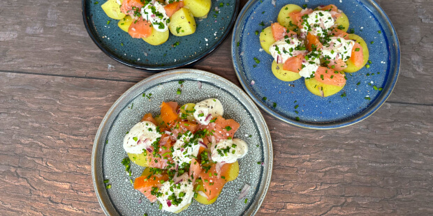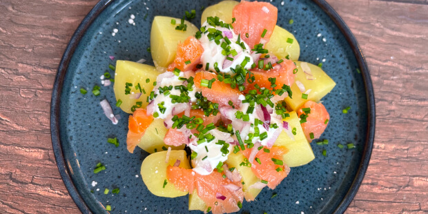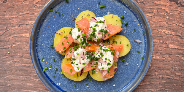 Flot forret med nye danske kartofler og laks. Den smager simpelthen så godt og tager kun 20 minutter at lave.