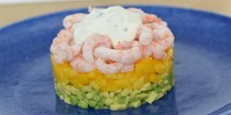 Flot forret med rejer, som kun tager 20 minutter at lave og består af sprød butterdej, der toppes med lækker avocadocreme, tynde aspargesstrimler og dejlige rejer.