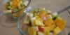 Skær alle frugterne ud i små stykker, og kom dem op i vaniljecremen. Bland det hele sammen, og server så frugtsalaten.