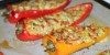 Skær toppen af peberfrugterne og rens dem for kerner. Fyld peberfrugterne og bag dem i ovnen i ca. 30 minutter ved 200 grader.