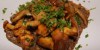 Brun oksekødet i lidt af olien (ca. en fjerdedel) på en pande ved høj varme. Når kødet er brunet tilsættes de hakkede løg og svampestokke. Rør et par gang, og skru ned på middel-høj varme.