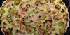 Top med kartoffelskiver, porreskiver og bacon. Lad ikke ingredienserne overlappe alt for meget - så bliver bunden ikke sprød.