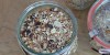 Hak solsikkekerner, hørfrø, hasselnødder og mandler. Brug evt. en foodprocessor, blender el. lign. Kom de hakkede frø og nødder i en skål og bland kokos og rapsolie i. Rør det godt sammen. Hæld lidt vand i, hvis blandingen stadig er tør.