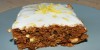 Hæld dejen i en bradepande (ca. 35 x 40 cm) beklædt med bagepapir. Bag kagen i ca. 20 minutter ved 175 grader. Tjek, om den er færdig, ved at stikke en strikkepind, tandstik eller gaffel i kagen. Der må ikke sidde dej på instrumentet.