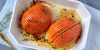 Fordel græskarstykkerne på en bradepande beklædt med bagepapir, og vend dem med olivenolien. Drys med salt og peber, og bag dem ved 200 grader varmluft i ca. 20-30 minutter. Bagetiden afhænger både af ovnen og størrelsen på græskarstykkerne, så vær lidt opmærksom.