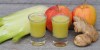 Skræl ingefæren, og skær den i små stykker. Kom dem i en stor skål (der skal kunne være 2 liter vand i skålen). Halver citronerne, og pres saften ud i skålen med ingefær.