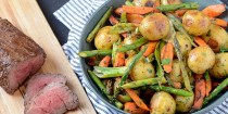 Det lækreste italienske tilbehør til oksemørbrad med dejlige ovnbagte grøntsager, der får en drøngod smag fra hvidløg, timian og olivenolie.
