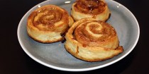 Rul dejen sammen som en roulade, og skær den ud i 8 kanelsnegle (svarer igen til 1 form).
