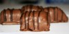 Når chokoladen er størknet, skæres den overflødige chokolade i bunden væk med en lille kniv.