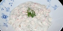 Det smager også rigtig godt at lave krabbesalaten med en rød dressing i stedet for en krydderurtedressing - brug f.eks. den her lækre skaldyrsdressing.