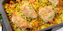 - Bag i ovnen ved 220 graders varmluft i 30-35 minutter (afhængig af kyllingefileternes størrelse og ovn). Skru evt. over på grill de sidste to minutter, hvis baconen ikke er gylden, men pas på, at den ikke bliver brændt.
