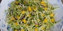 De søde stykker mango tilføjer lidt eksotisk til denne dejlige broccolisalat, der kan serveres både med og uden dressing. De sprøde mandler, den bløde mango og de friske forårsløg klæder virkelig hinanden - både i smag og konsistens.