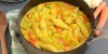 Slå æggene ud i en skål og pisk dem. Bland hytteost og evt. pesto i. Hak løg og rør dem i blandingen. Krydr med salt og peber.