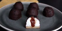 Kom de tre slags chokoladeganache op i hver sin sprøjtepose (evt. med forskellige tyller i, så du får forskellige udtryk på tapaskagerne). Er ganachen blevet lidt for kold til at kunne sprøjtes ud, kan du varme sprøjteposen med ganachen op med hænderne.