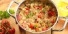 Tilsæt tomatpuré, hønsebouillon og pasta og lad retten simre under låg i ca. 10 minutter eller til pastaen er mør.