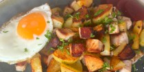 Hvis du har rester af både flæskesteg og kogte kartofler, er det ekstra nemt at lave biksemad. Se opskriften her:
