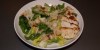 Skær kyllingen i tern og kom olie, salt og peber samt oregano over stykkerne. Vend det sammen i en pose eller i en skål. Steg kyllingestykkerne på panden til de er gennemstegte.