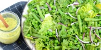 Skyl salaten, og lad det dryppe af. Skyl også bredbladet persille, lad det dryppe af, og pluk bladene af.