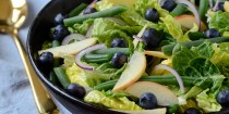 Skal du servere den som en dejlig forårssalat, er det også virkelig lækkert at tilføje lidt friske aspargesstykker til salaten. Og som en frisk sommersalat til f.eks. grillet oksemørbrad, kan du med fordel grille de halve bagte rødløg i stedet for at bage dem. Pak dem blot ind i stanniol sammen med smørret, og kom dem på grillen, indtil de er møre.