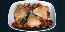 Kyllingeoverlår i ovn med grøntsager