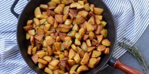 Hvis det skal være nemt, kan du undlade at forkoge kartoflerne først, men jeg vil klart anbefale, at man ikke springer dette trin over, da det er afgørende for at få ekstra sprøde kartofler.
