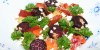 Fordel ca. 50 g blandet salat (til 2 personer) på et fad eller en tallerken, og fordel rodfrugterne ovenpå. Servér gerne en creme fraiche dressing med sennep til.