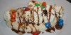 Hak chokoladen og rør det i isen. Skær vandbakkelserne over og kom isen i lige inden servering.